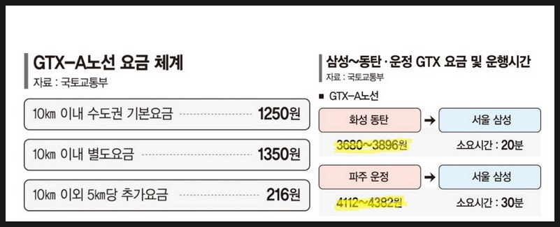 GTX-A 노선 요금은 아래와 같습니다.