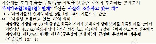 과세표준과 세율의 기준이 되는 과세기준일은 매년 6월1일입니다.
