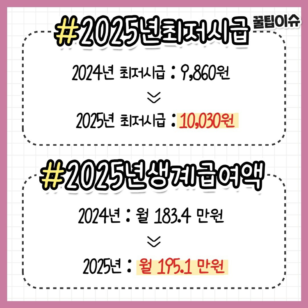 2025년 최저시급은 24년에 비해 1.7%상승한 10,030원입니다. 최저시급이 최초로 만원이 넘는 상징적인 해가 되겠네요.