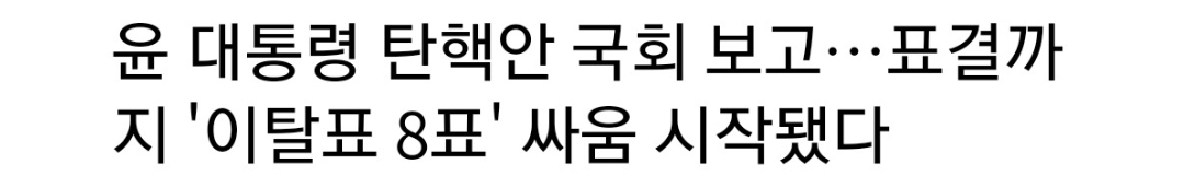 전체 의원수 300명, 국민의힘 의원수가 108명으로 국민의 힘 8표가 동의를 해야 탄핵안이 통과 될 수 있습니다.