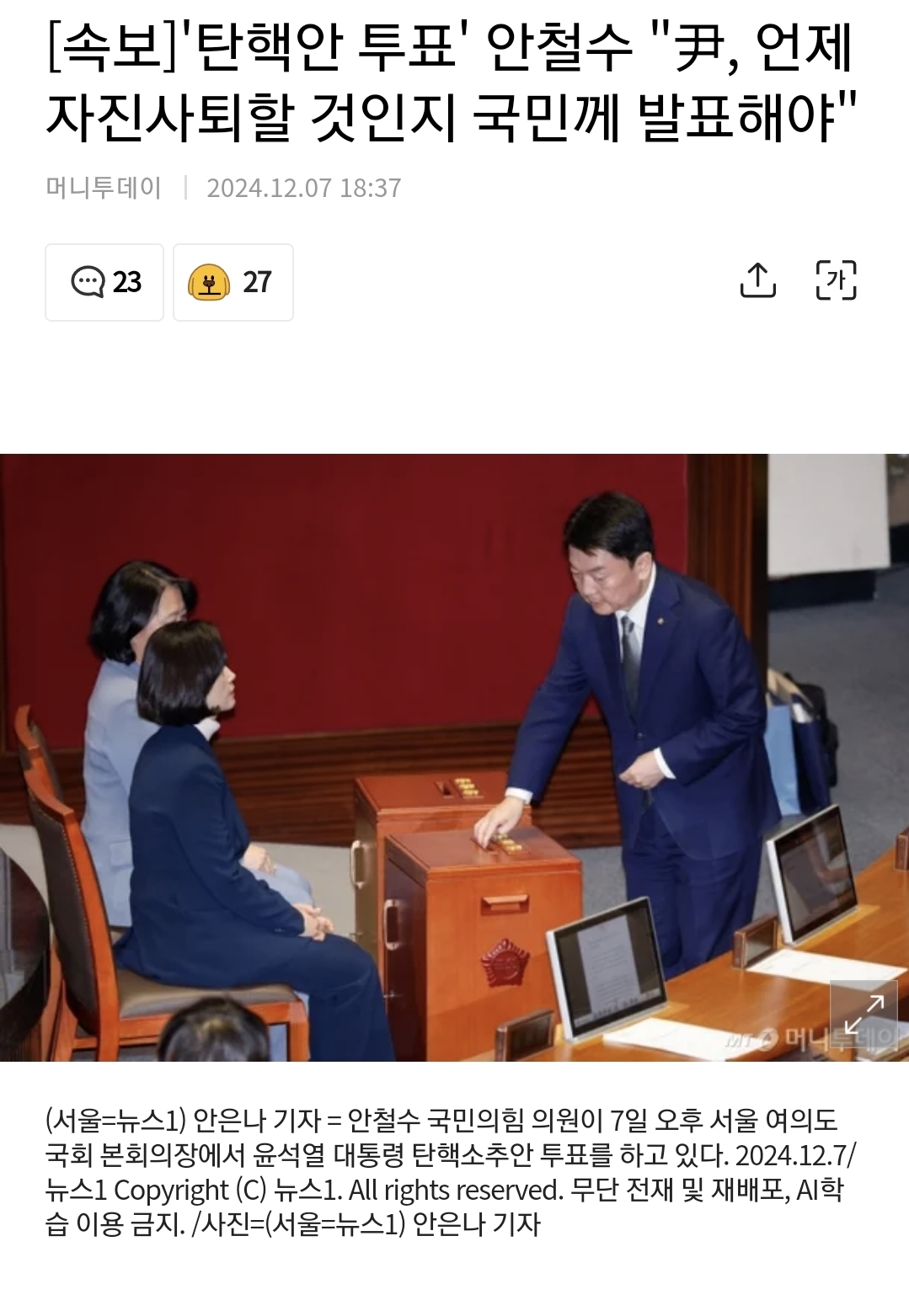 | 여당 윤석열 대통령 탄핵 표결 불참(탄핵 부결) (1) | 2024.12.07 |