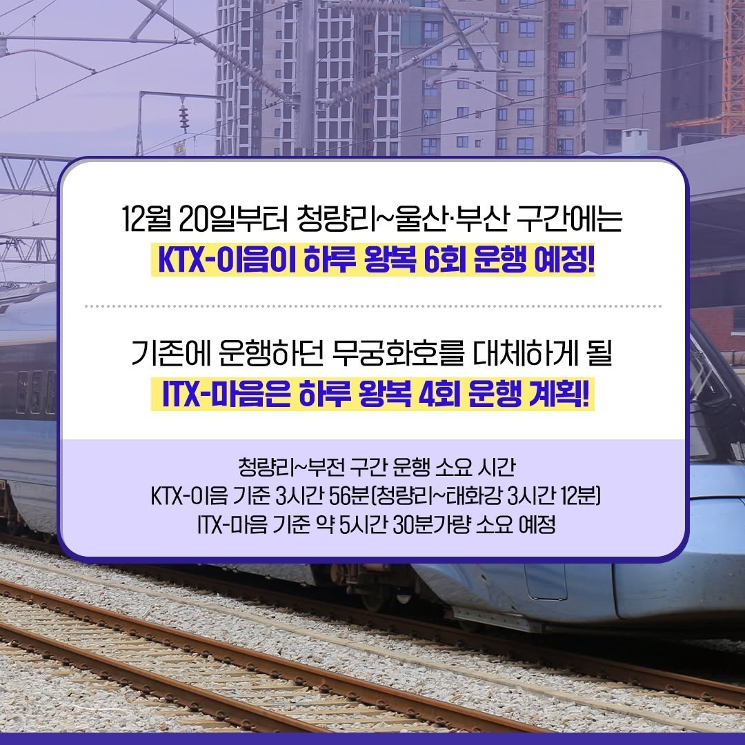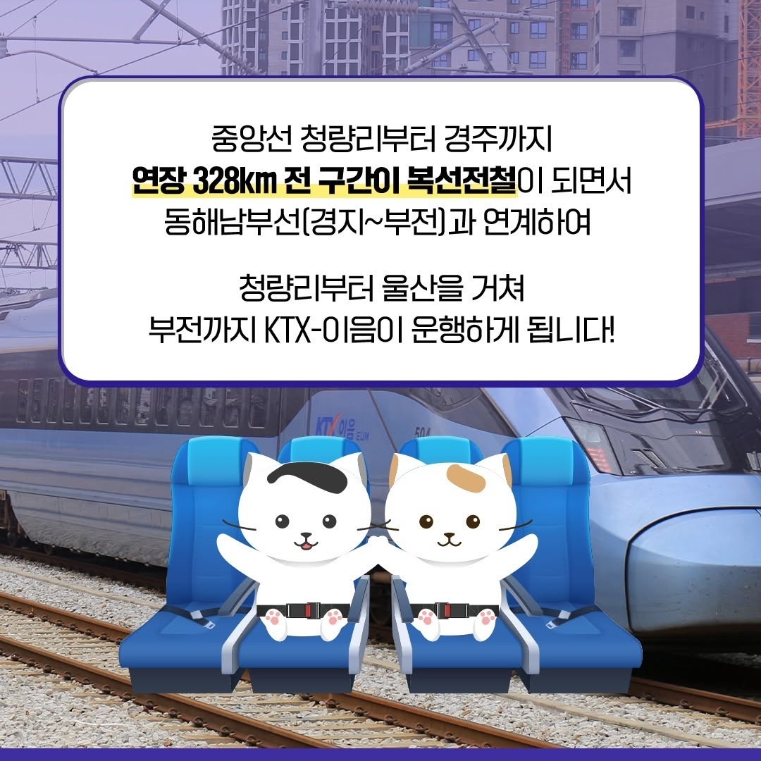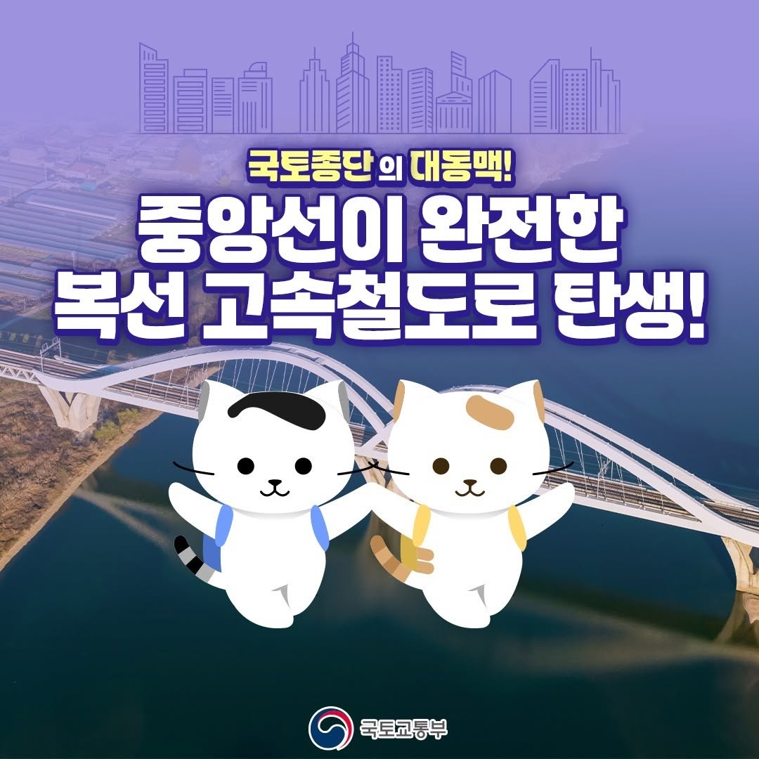 우리나라 종단의 대동맥인 중앙선이 복선 고속철도로 완전 개통된다고 합니다.