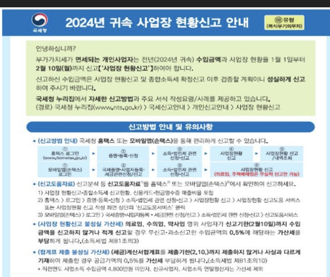 사업장현황신고면세사업자들이 전년도 사업실적을 신고하는 제도입니다