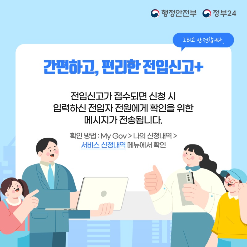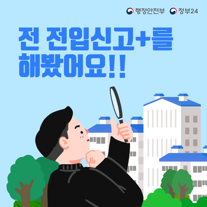 소중한 재산을 지키기 위해서 전입신고는 필수입니다. 정부24 를 이용해 빠르고 간단하게 전입신고하세요.