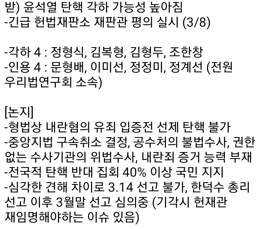 그리고 탄핵심판 일정이 당초 3월 중순에서 3월말로 미뤄질 가능성도 크다고 합니다.