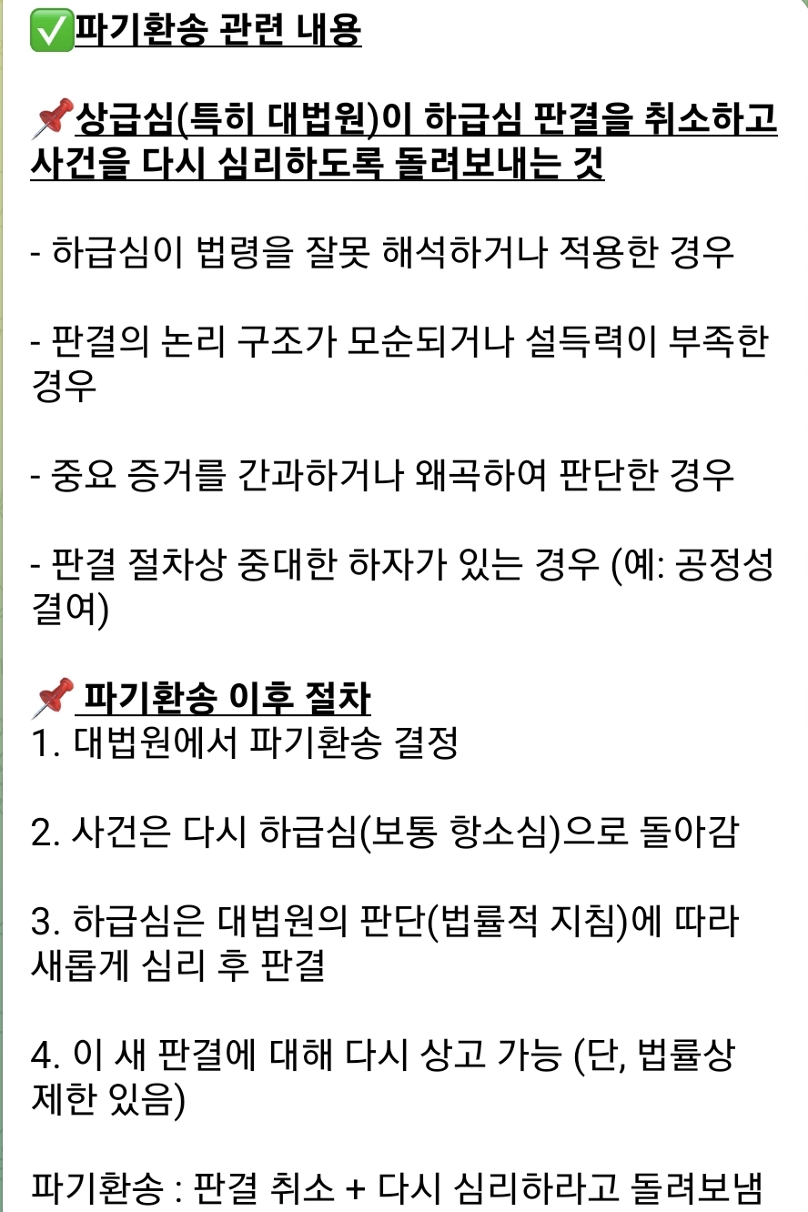 상급심(대법원)이 하급심 판결을 취소하고 사건을 다시 심리하도록 돌려보내는 것입니다.