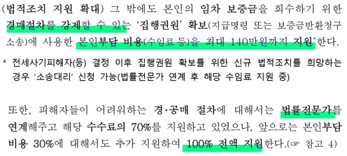 이전에 전세사기 피해 지원금액이 비용의 70%였고 30%는 본인 부담이었는데, 기 부담한 본인 부담분 30%에 대해서도 소급해서 지원해준다는 내용입니다.