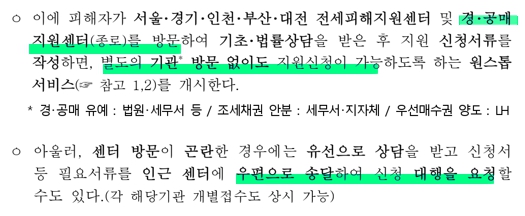 (경공매)는 법원, 세무서 (조세채권)은 세무서, 지자체 (우선매수청구)는 LH를 방문했어야 했는데 이제는 전세피해지원센터나 경공매지원센터에서 상담 받고 신청서류를 작성하면 일괄로 신청이 된다고 합니다.
