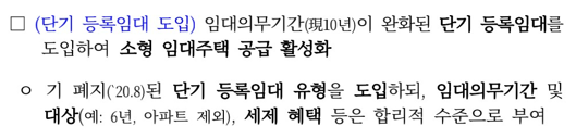 소형 주택의 구입 부담을 줄이고 과거 운영되던 민간등록임대주택 제도도 다시 활성화하는 내용입니다.