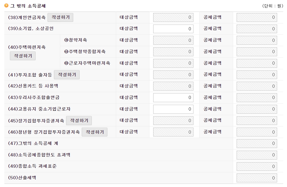※ 여기서부터는 지급받은 분의 개인 정보이기 때문에 해당 당사자에게 국세청에서 제공하는 연말정산 자료를 받으셔서 입력하셔야 합니다.