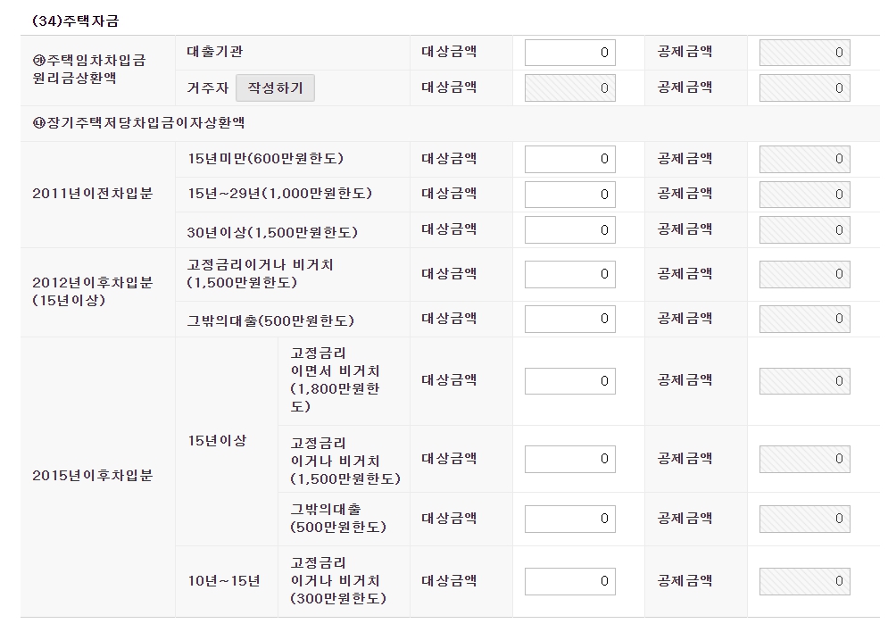 7. 주택자금 등 그 밖의 소득공제 정보 입력(해당사항 있는 경우만 입력)