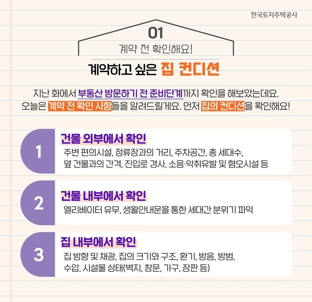 부동산 사기 계약 문제로 집 구하실때 많이 걱정되실텐데요. 계약하기전에 아래 사항만 확인해도 곤란한 상황을 겪지 않을 수 있으니 참고하시기 바랍니다. (자료 출처 : 한국토지주택공사)