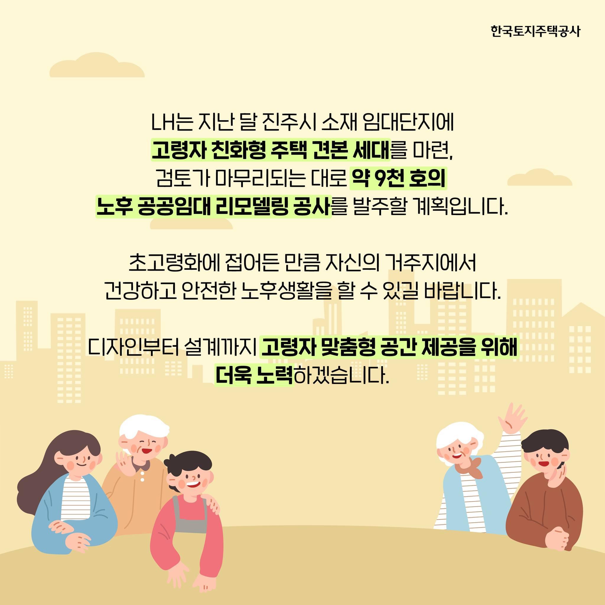 한국토지주택공사에서 노후 임대주택 1천호를 고령자가 거주하기 편한 주택으로 리모델링한다고 합니다.
