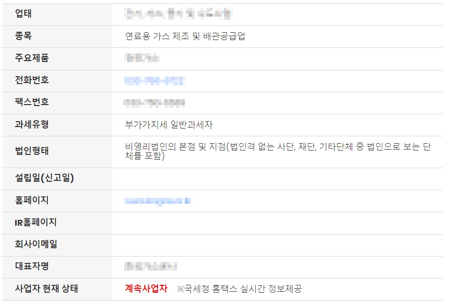 검색포털 사이트에서 "비즈노" (https://bizno.net/)를 검색하셔서 들어가면 홈택스보다 좀 더 자세한 사업자 현황 정보를 보실 수 있습니다.