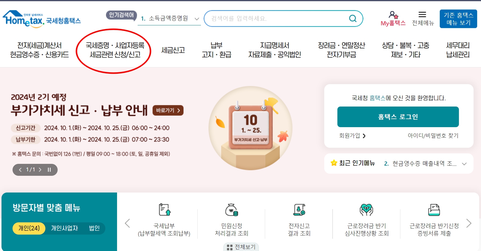 먼저 홈택스(https://www.hometax.go.kr/)에서 접속하셔서 아래 순서대로 클릭 후 사업자번호를 입력하시면 사업자현황을 조회 할 수 있습니다.