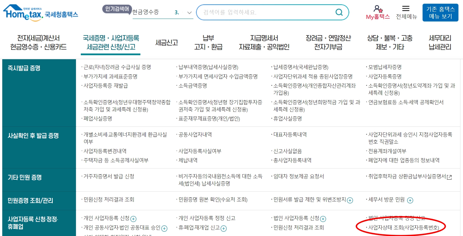 사업자등록번호 조회 방법(홈택스 사업자현황 조회)