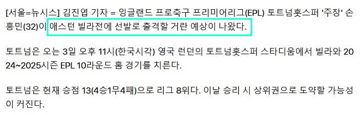 먼저 해외파 선수중에 가장 관심을 많이 받는 손흥민 선수가 부상 때문에 한동안 경기에 나서지 못했는데 이번주 경기에는 복귀할 가능성이 크다고 합니다.