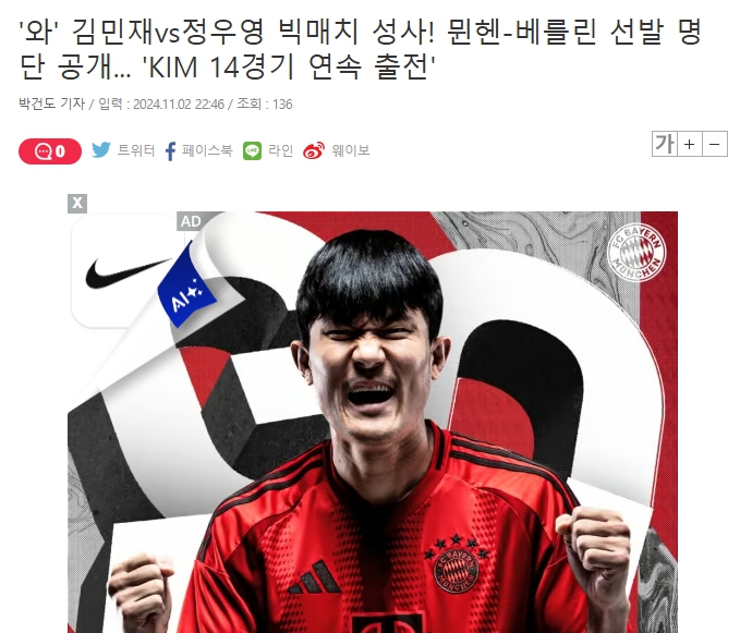 김민재 선수는 개인적으로 좋지 않은 일이 있었는데도 불구하고 팀에서 좋은 활약을 펼치고 있습니다. 이번 경기도 기대가 되네요. 특히나 이번 라운드에서는 정우영선수가 뛰고 있는 우니온 베를린과 경기를 한다고 합니다.