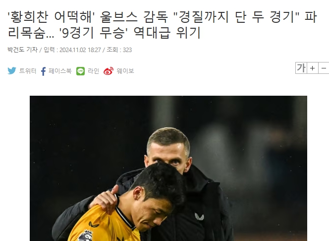 황희찬 선수는 부상도 있고 요즘 팀에서 중용되지 못하고 있는데 이번에는 선발로 나올 수 있을지 지켜봐야 하겠네요. 팀성적이 워낙 좋지 않아서 감독도 경질위기라고 하는데 좋은 경기 펼칠 수 있으면 좋겠습니다.