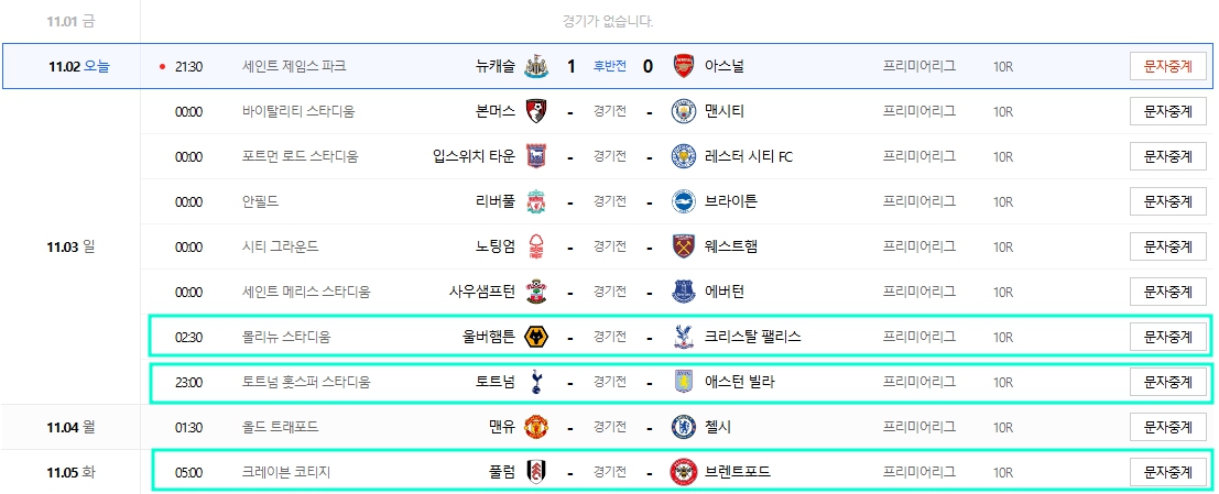 이번주에는 국가대표 A매치가 없어서 대부분 리그에서 정상적으로 경기가 있습니다.