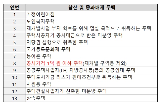 또한 주택 수 산정할때 아래와 같이 주택수에서 제외되는 주택들이 있습니다.(특례)