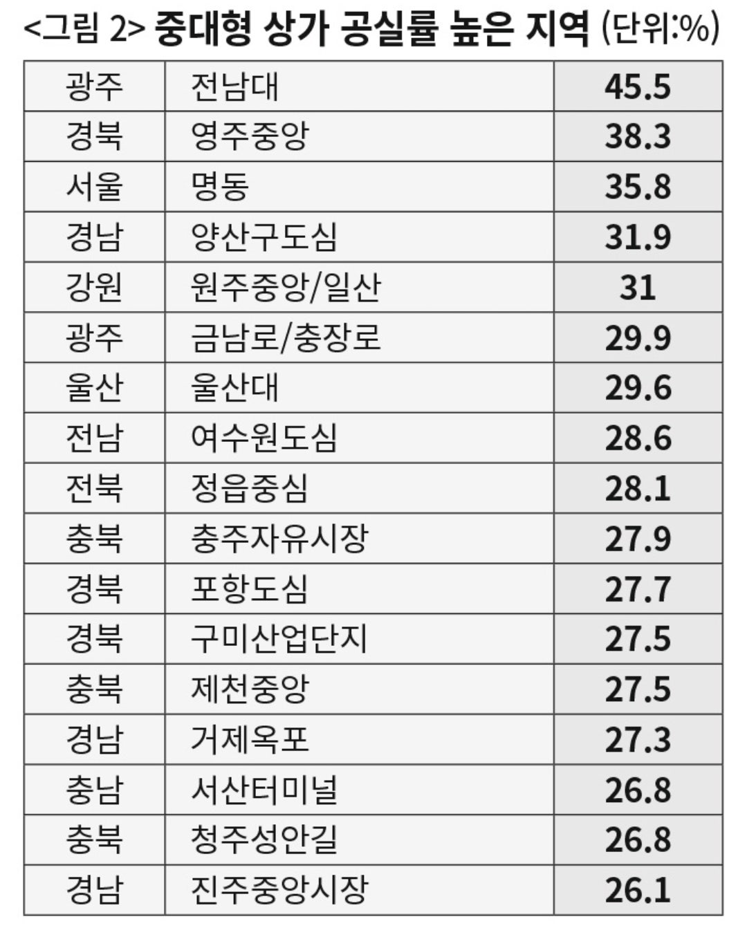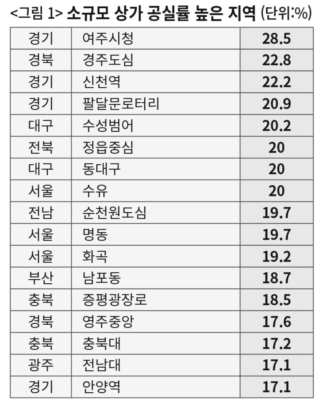 우리나라 상가 공실률 순위