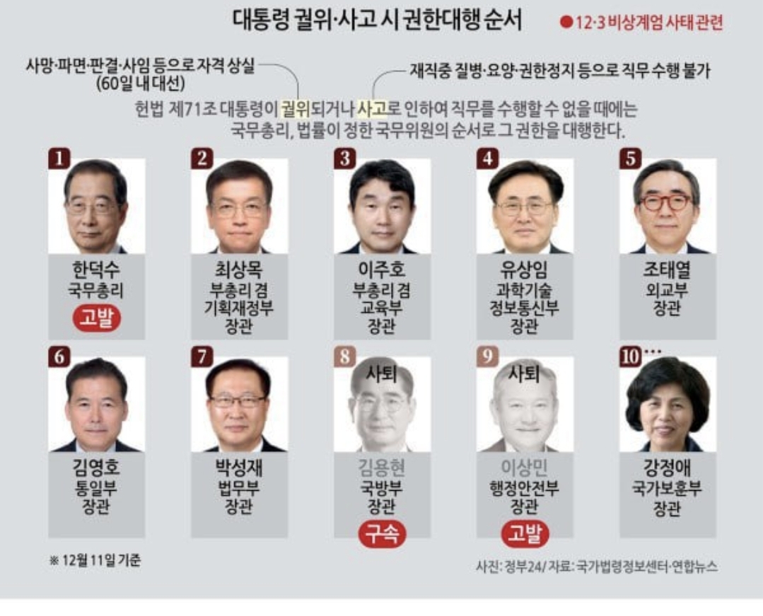 한덕수 총리 탄핵(권한대행 순서)