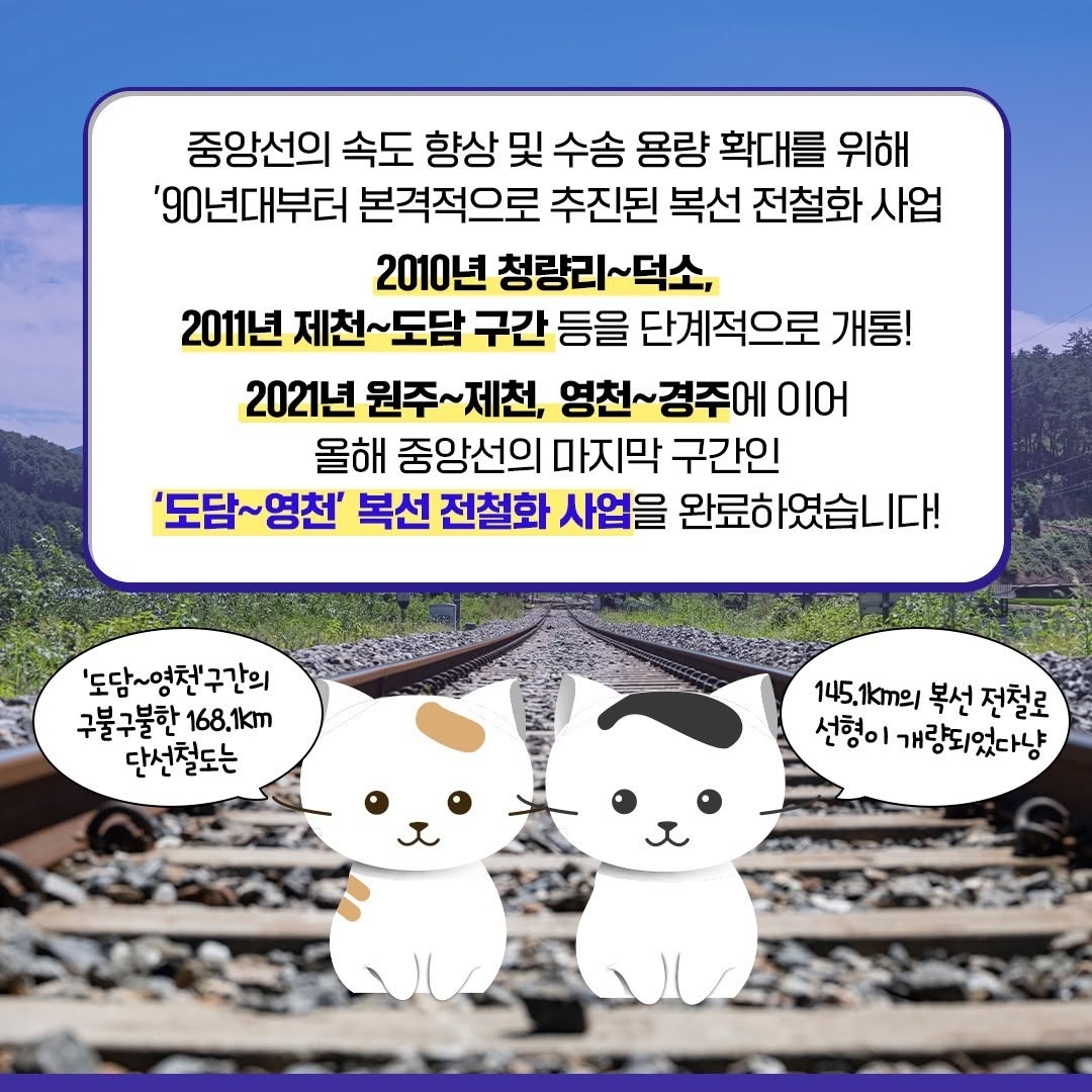 우리나라 종단의 대동맥인 중앙선이 복선 고속철도로 완전 개통된다고 합니다.