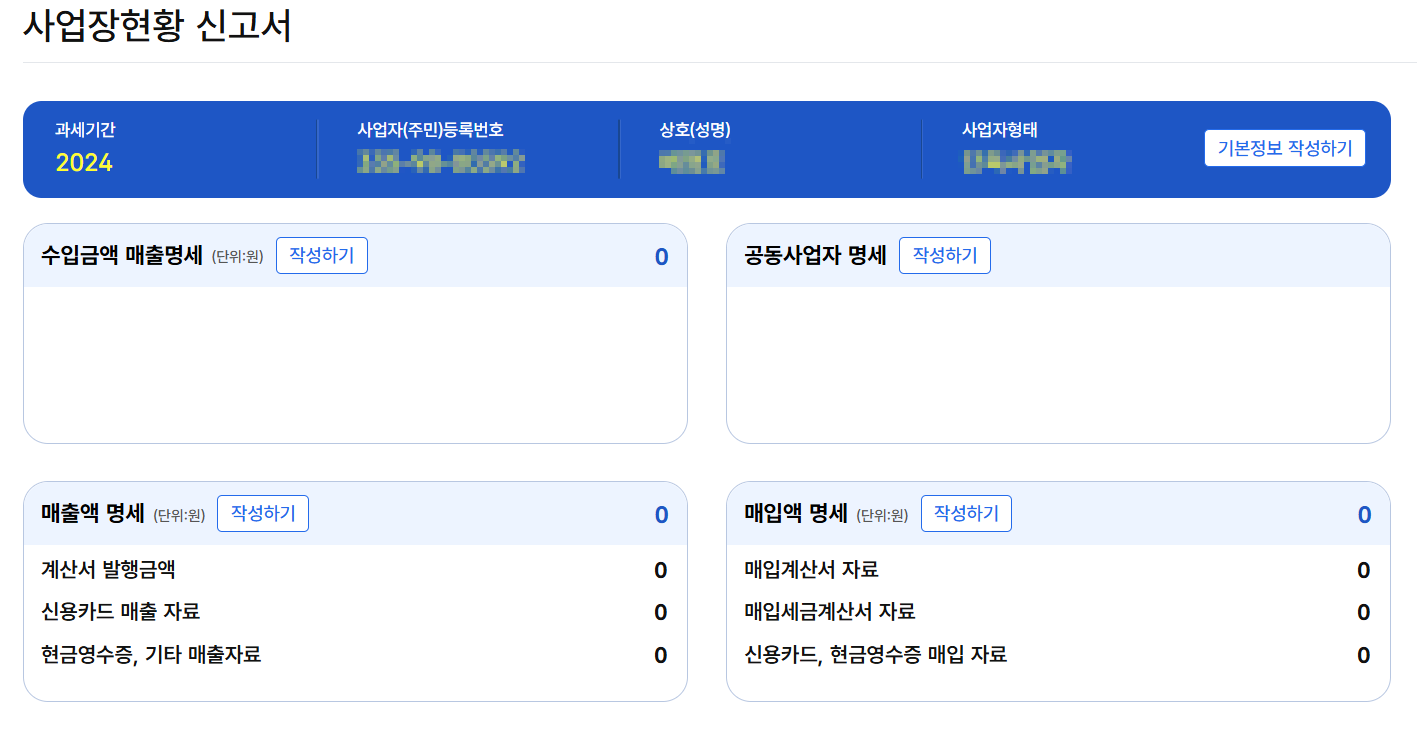 사업장현황 신고서 작성한 내역이 보여집니다.