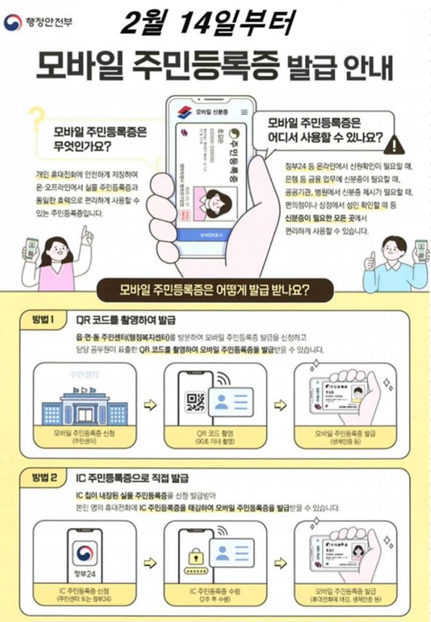 2월 14일부터 모바일 주민등록증이 발급가능하다고 하니 신청하시기 바랍니다.