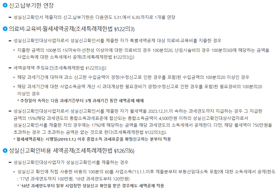 성실신고확인 대상이 되면 아무래도 비용과 시간이 더 들어가야 하기 때문에 번거로울 수 밖에 없는데 정부에서 혜택도 제공하고 있습니다.