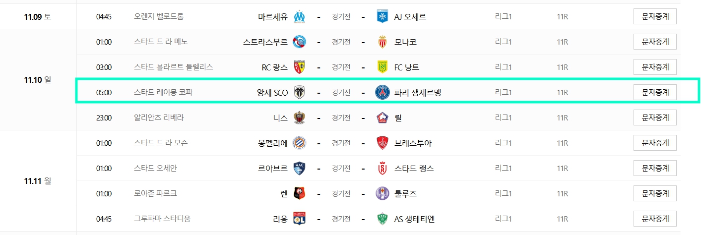 이강인 선수가 뛰고 있는 프랑스 리그는 토요일부터 경기가 있는데 이강인 선수의 파리 생제르망은 일요일 새벽 5시에 있습니다.