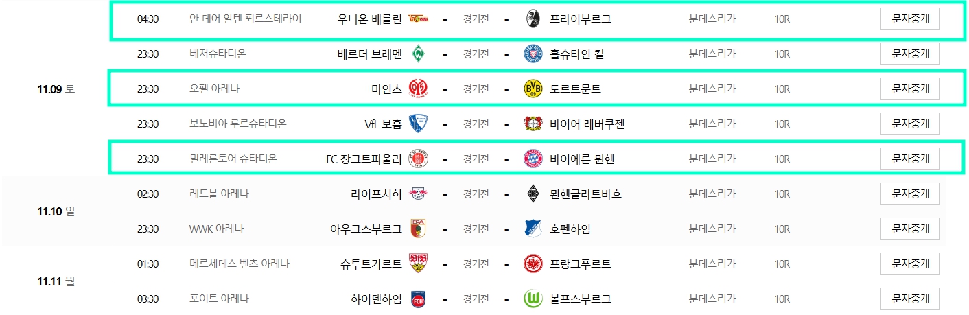 분데스리가 경기 일정은 아래와 같습니다. 김민재 선수가 뛰고있는 뮌헨의 독주가 계속 되고있는데 김민재 선수도 뮌헨의 주전으로 굳건히 자리를 지키고 있어 이번경기에도 선발로 나올 것으로 보여집니다.